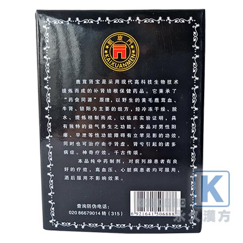 鹿茸腎宝(漢方薬滋養強壮剤)は滋養強壮としても優れ、体の中から改善してくれる目玉商品!益の息が精密な益の髄を精力をつけて、増やして、腎臓の息の不足の引き起こす神経衰弱に用いて、優れた血の方虚、インポテンツ、早漏、が夢精して遺精します、腰の酸っぱい足が柔らかいです。