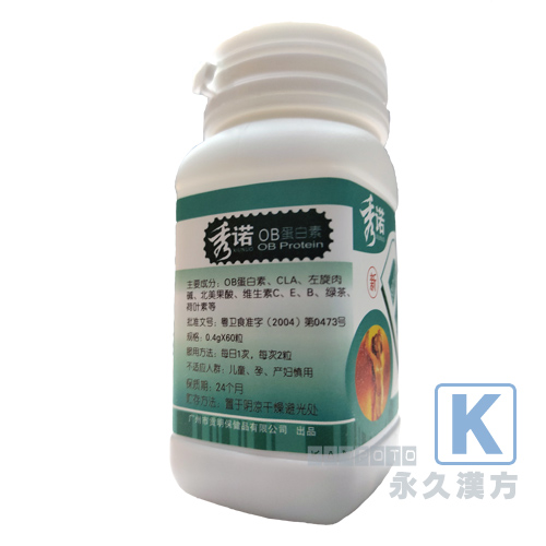 秀諾OBプロテインは“医食同源”の漢方理論に基づき様々な天然原料を最適な配合でカプセル剤とした最新のダイエット製品です。食欲抑制、カロリー消費促進、脂肪吸収抑制、脂肪分解促進などの作用を持つOBプロテインが入っています。