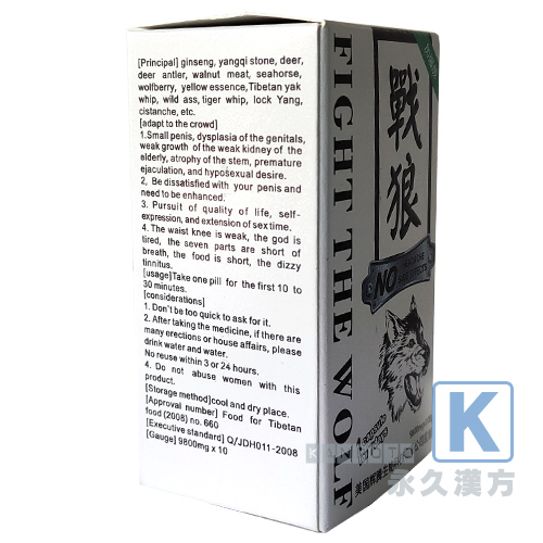 高麗人参、阳起石、枸杞子、黄精、海馬、虎鞭、牛鞭、鎖陽、肉蓯蓉など。戦狼の副作用