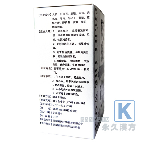 勃起不能、早漏、性欲減退、性交過多、男女性機能障害、倦怠感、腰や足が痛い、冷え症、夜間頻繁に尿意を催す、などに効果があります。