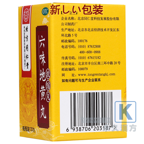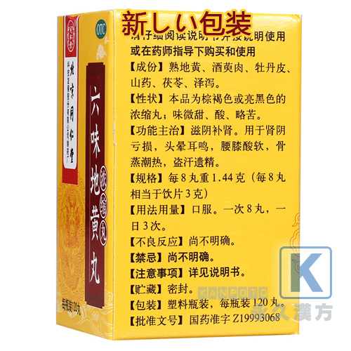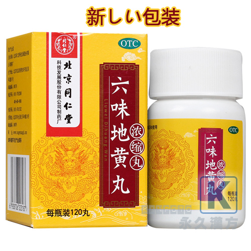 【六味地黄丸(同仁堂)の効 果】腎機能低下による倦怠感・めまい・耳鳴り、慢性腎炎、糖尿病、高血圧、更年期障害、歯痛、血便、疲労感。排尿異常のある人の排尿困難、頻尿、尿量減少、または多尿などを和らげ、むくみ、かゆみを改善します。滋陰補腎。補腎固精、益気の効能があり、補精血、強身。