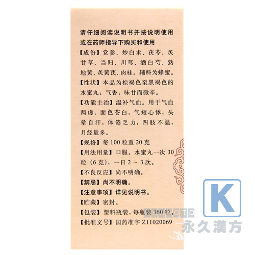 虚弱体質、体力減退、疲労回復、病中、病後および産後の栄養補給。胃腸が弱く、貧血気味で疲れやすく、足腰が冷え、めまいがしたり、女性では月経の不順などの症状があるものにも用います。産後や病後の体力の増強にも効果があります。