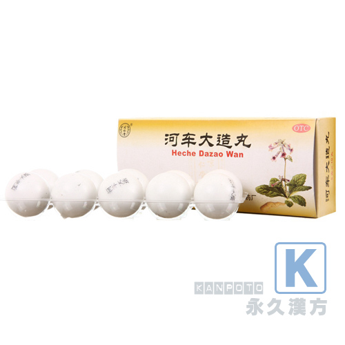 河車大造丸は黒褐色の大蜜丸で、やや香りがあり、味が苦・甘です。滋陰(潤し、冷やすカ(陰)を補充すること)、清熱(熱邪を解消すること)、補腎(腎の機能を高めること)、益肺(肺の働きを高めること)の作用があります。肺腎両虚、潮熱、寝汗、遺精、咳嗽、足や腰がだるいなどに用いられます。