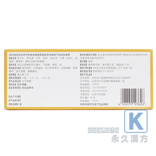 1回1丸を1日2回、水まだはお湯で服用してください。服用の詳しい方:外包を割り、中の丸薬を小さく切り、数回に分けて飲んでください。或いはそのまま、かんで服用してください。