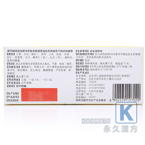 人参健脾丸(同仁堂胃腸科漢方薬) 10丸入