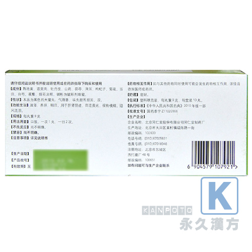 明目地黄丸はやや香りがし、味が少し苦く甘いです。明目地黄丸は肝臓と腎臓の調子を整え、目の疲れや視力減退を改善します。養生効果を含めて、長期服用も可能です。風が吹くと泪が出やすい、充血しやすいなど症状にも効果があります。