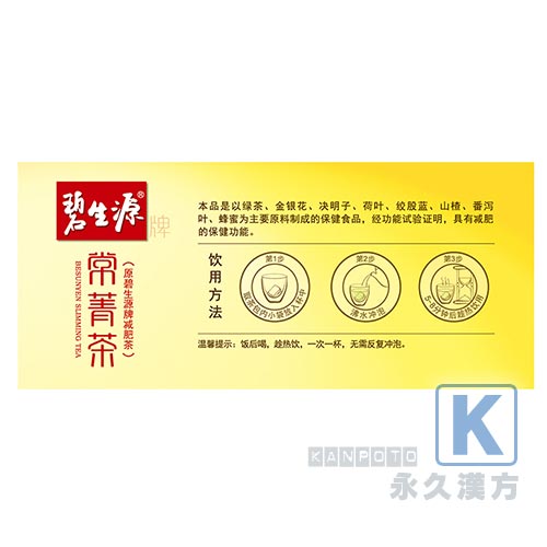 碧生源常菁茶は、自然のハーブにより脂肪・血中脂質量を減らし健康的に減量し、美しい体系と体重を維持します。 碧生源減肥茶は、ナチュラルハーブにより脂肪、血中脂質量を減らし、健康的な減量おこないますので、体に負担をかけることなく体重を維持できます。