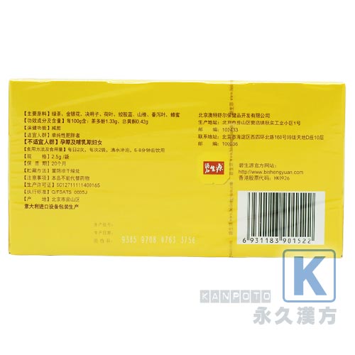緑茶、金銀花、蓮の葉、絞股藍、サンザシ、決明子、純蜂蜜など。碧生源常菁茶の副作用