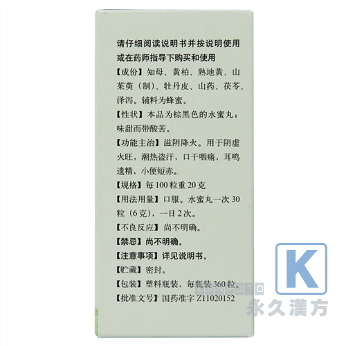 1回6g(30丸)、毎日2回、水まだはお湯で服用してください。知柏地黄丸の成分・分量