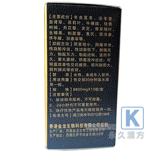 鹿茸、冬虫夏草、鹿鞭、虎鞭、千根草、黄精、東革阿裹、肉蓯蓉、龟甲、当帰、タツノオトシゴ等。男人腎宝の副作用