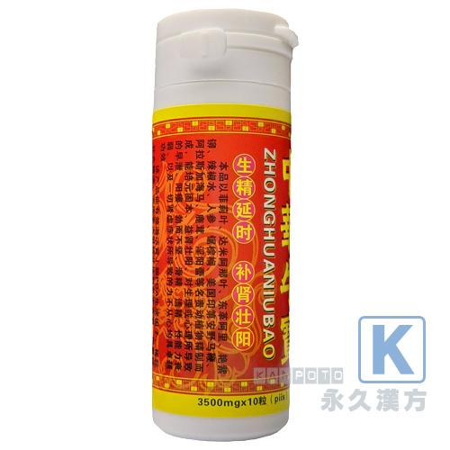 中華牛宝は、艶紫リュウ、唐辛子水、朝鮮人参、鋸棕櫚、アメリカインディアン野生馬のペニス、アラスカたつのおとしご、鹿茸、鎖陽、冬虫夏草、淫羊霍など貴重な動植物のエキスによって精製されたもので、精力熊になり、生理或は心理による早漏、インポテンツ、堅く立てない、精子滑り、夢精、性能力衰弱、または腎虚症状による「力は心に任せない」などの方々には適用され期待できる効果がでます。効果一