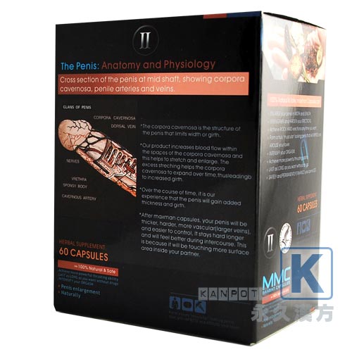 MAXMANペニス増大丸2代(MMC2)の独特な調合指図書によって、ペニスの血液の回流を促進し、体の中で天然ホルモンの製造を起動させ、睾丸のケトンの分泌を増加し、ペニスの長さと太さを増やす。100%天然、副作用がない。持続的に服用すると効果が一層高めることができる。